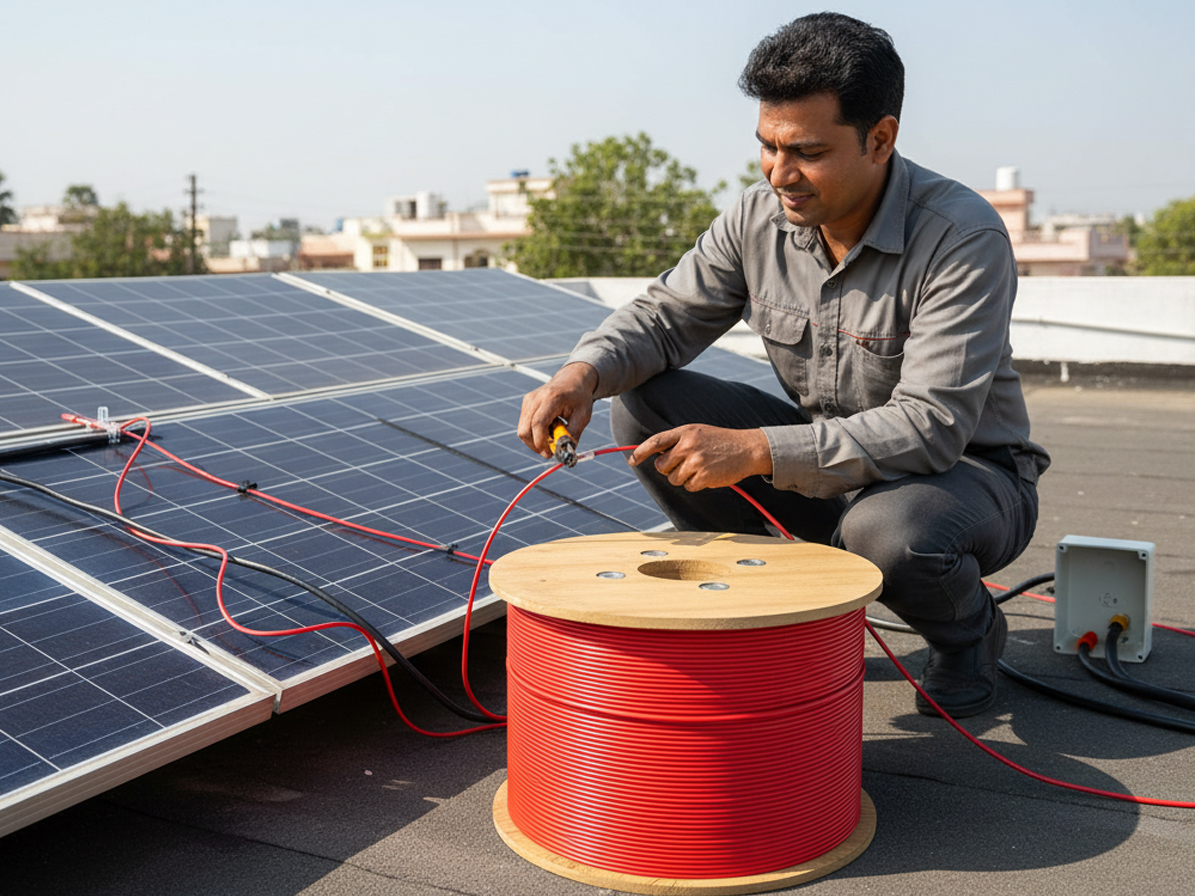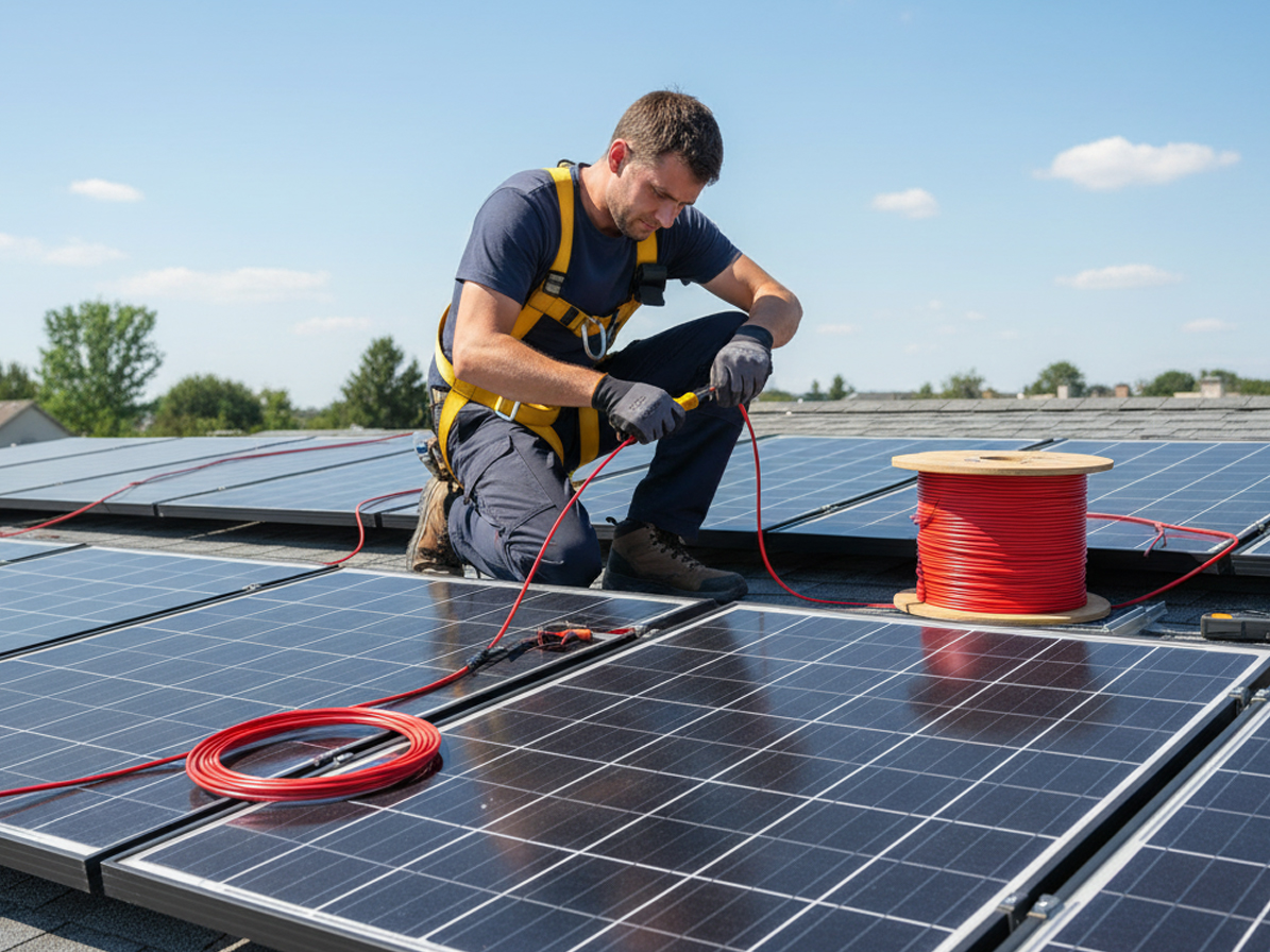 It can handle conductor temperatures up to +120°C (20,000 hours) and works securely in temperatures between -40°C and +90°C. It is rated for DC 1500V and AC 1000V. The cable also satisfies EN 60332-1-1 flame resistance standards and has ROHS, CE, and TUV certifications. This means it is safe and works well for tough solar applications.